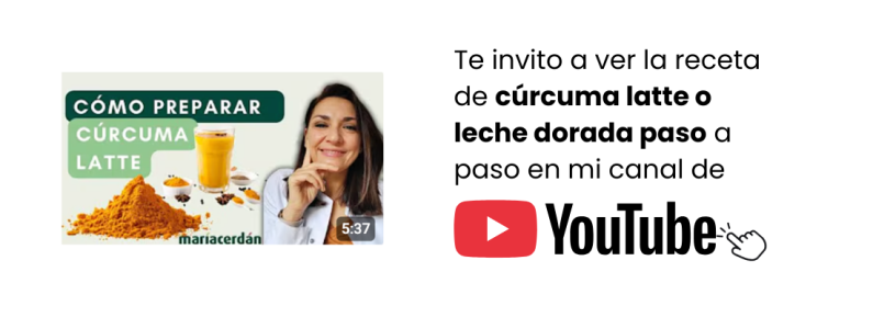 Opción dulce: aceite de coco con cúrcuma y pimienta para añadir a bebidas vegetales, batidos, repostería saludable o en forma de golden milk / cúrcuma latte / leche dorada. En mi canal de Youtube puedes ver la receta paso a paso.